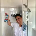 Az apartman külön WC-t és zuhanyzót biztosít a további kényelem érdekében. A fürdőszobában hajszárító, vendég piperecikkek és fürdőlepedők is biztosított.